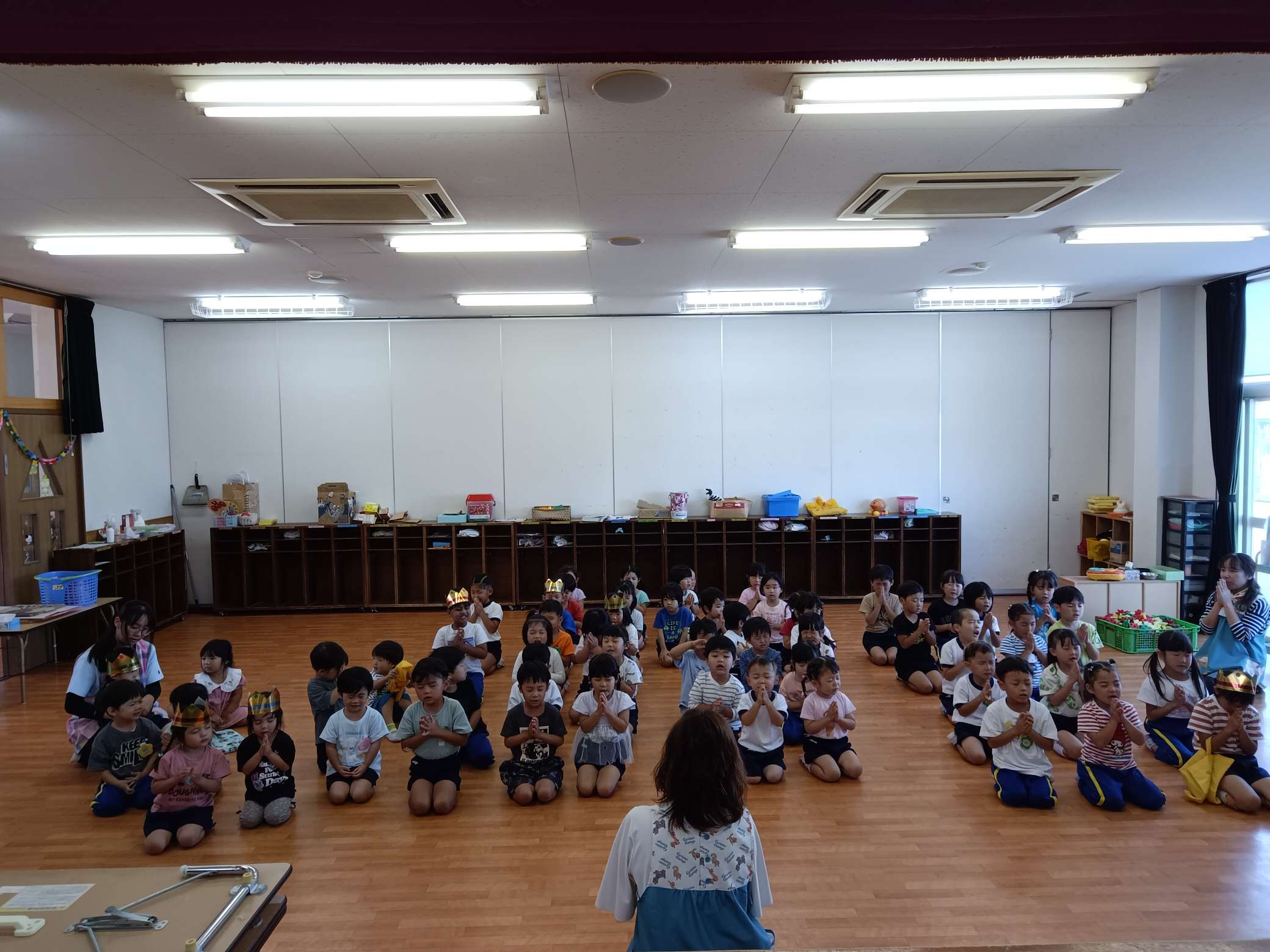 お礼拝の後は、お友だちの紹介。みんな大きくなったらや大好きなものを元気に発表できたね。