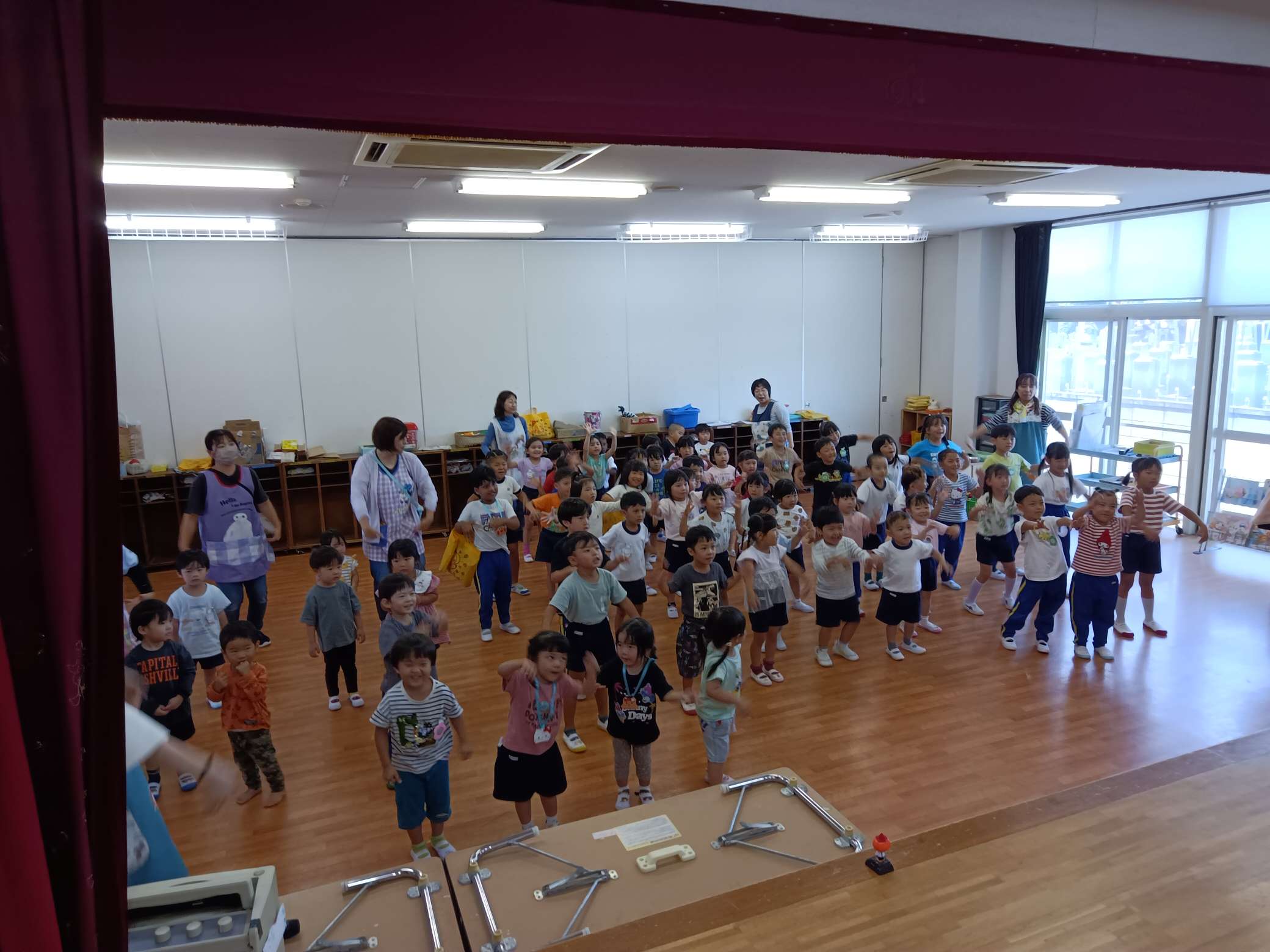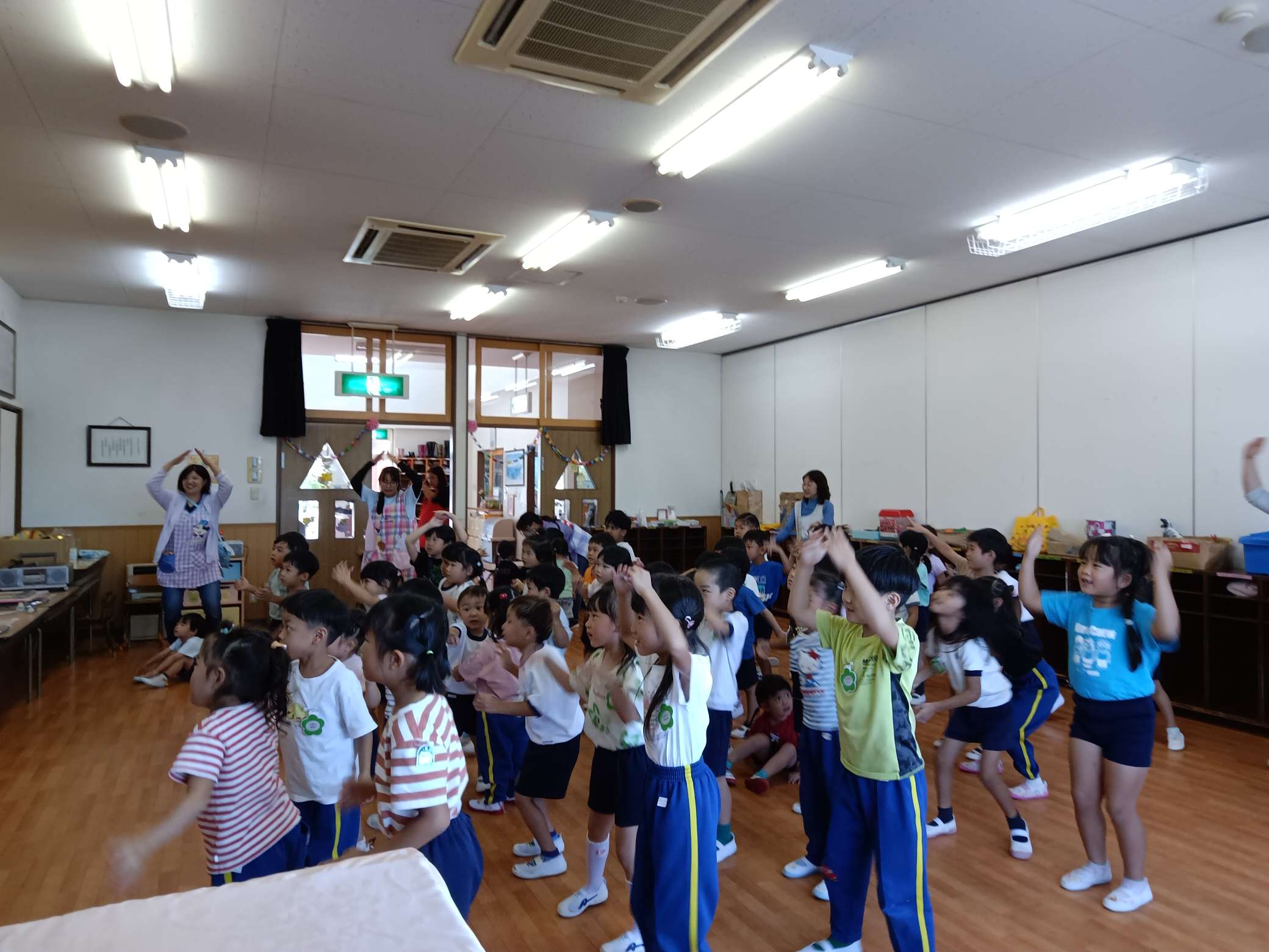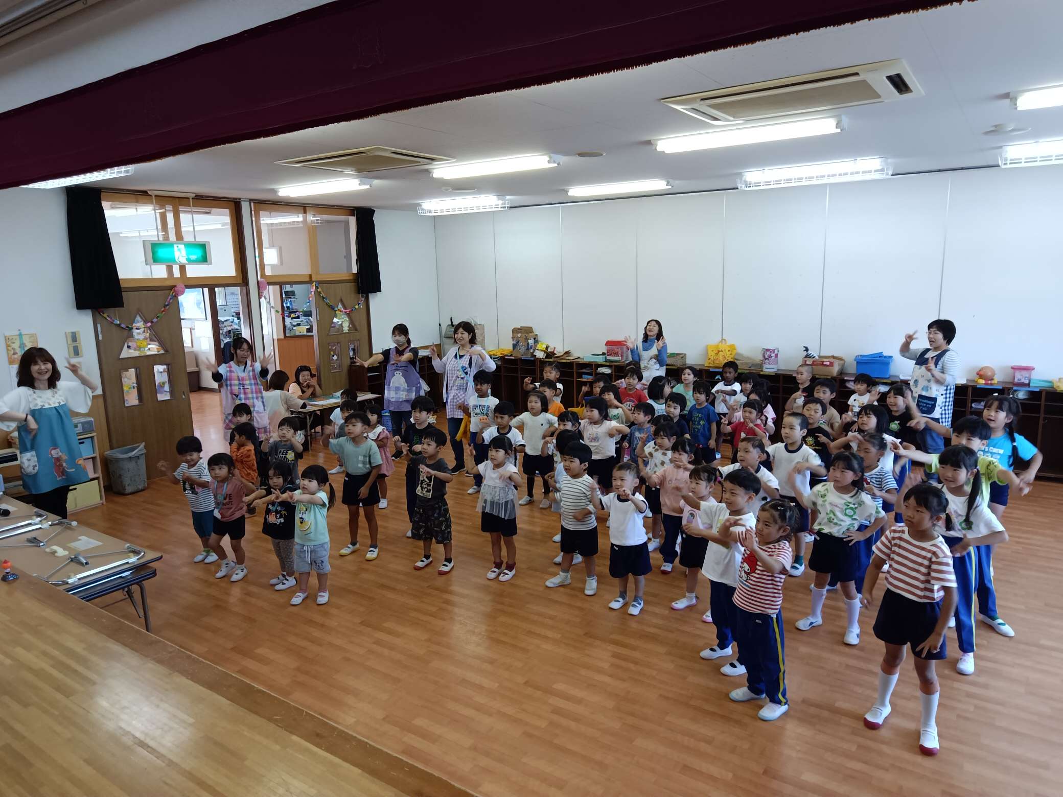 それから「だいおういかのいかたろう」という絵本を園長先生に読んでもらいました。またまた今日はみんなでイカに変身して〜イカ体操もしちゃったよ。楽しかったね。
