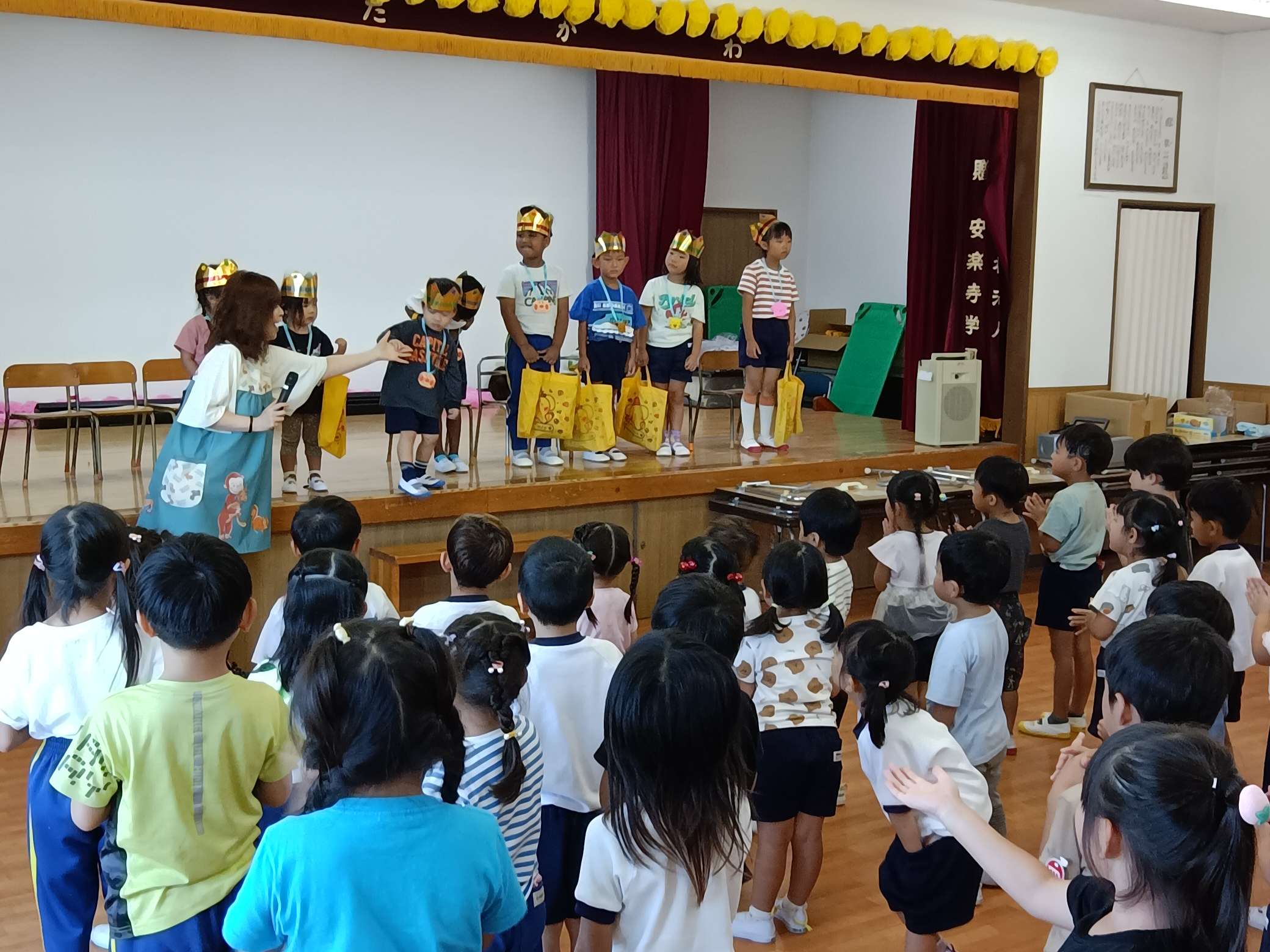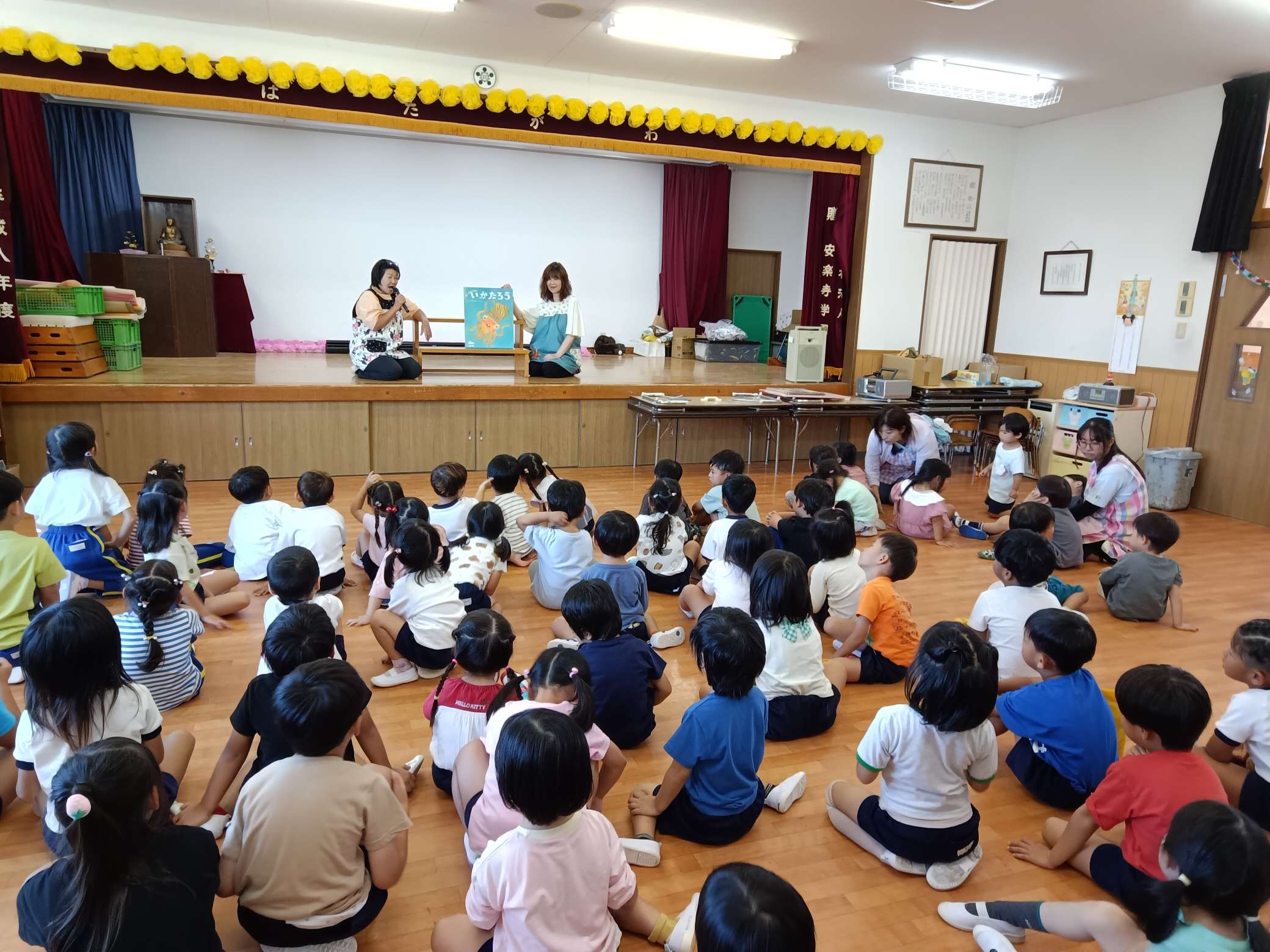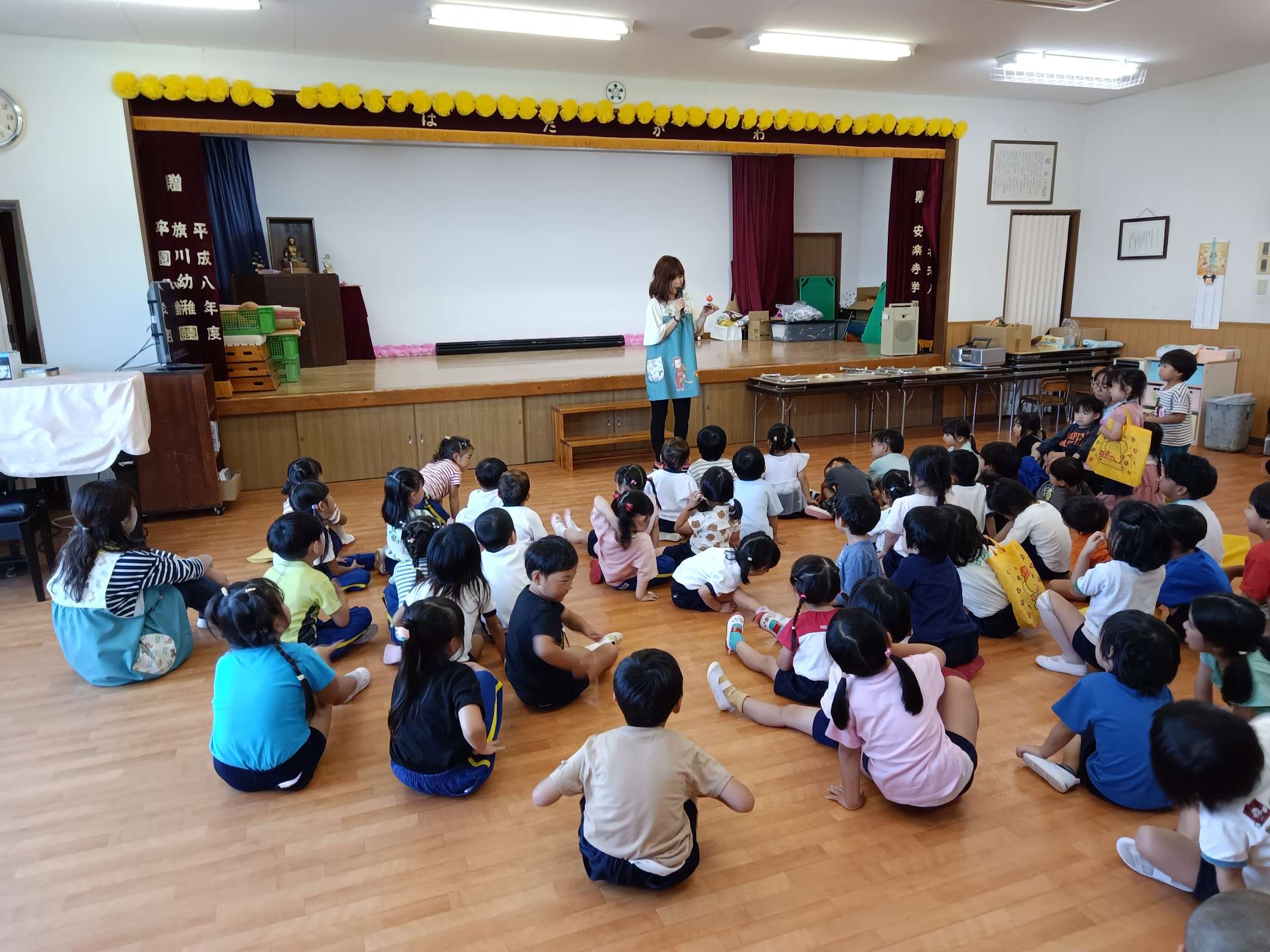それから「だいおういかのいかたろう」という絵本を園長先生に読んでもらいました。またまた今日はみんなでイカに変身して〜イカ体操もしちゃったよ。楽しかったね。