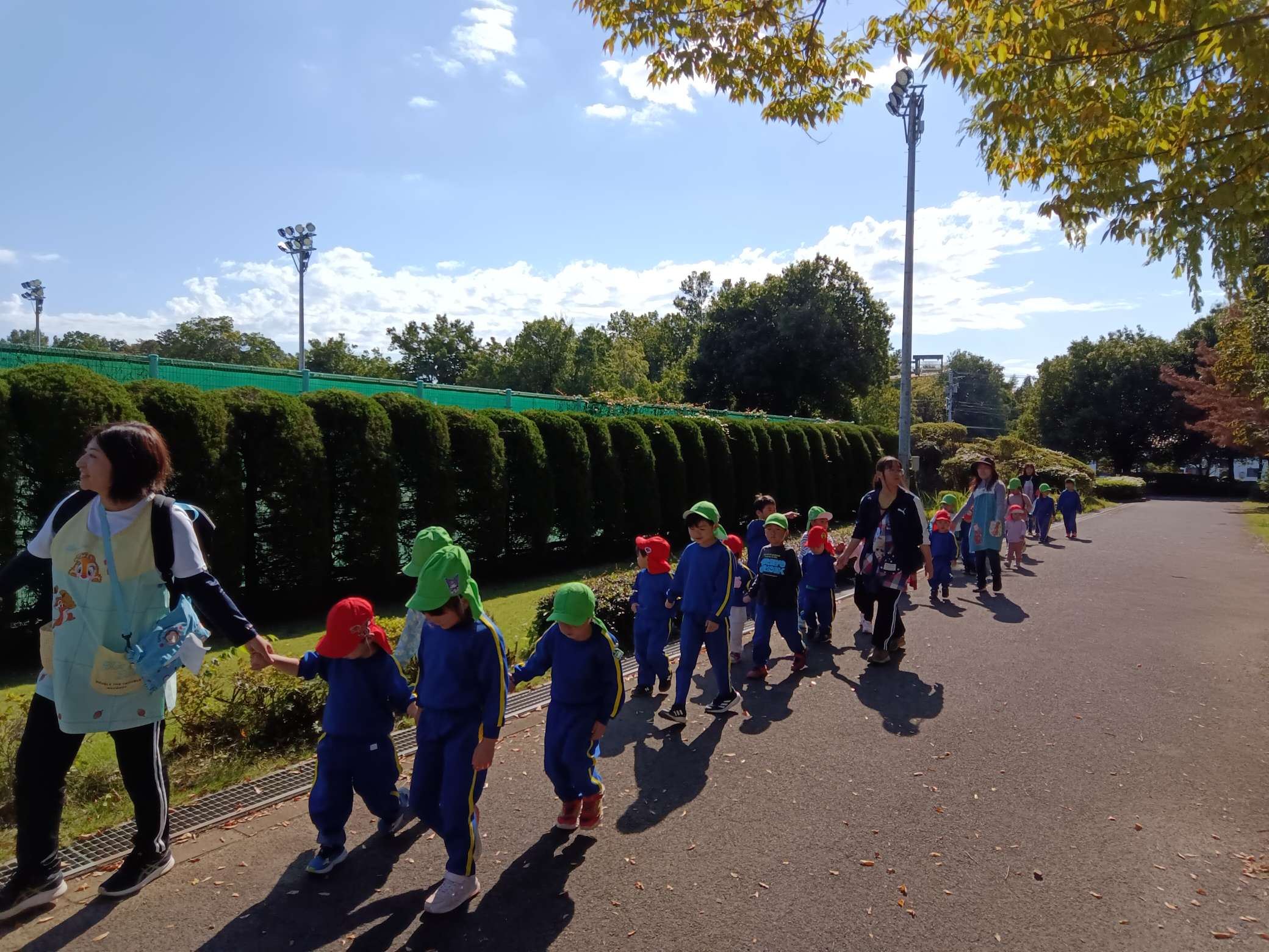 つきぐみのお兄さんお姉さんと一緒に手を繋いで歩いたよ😊