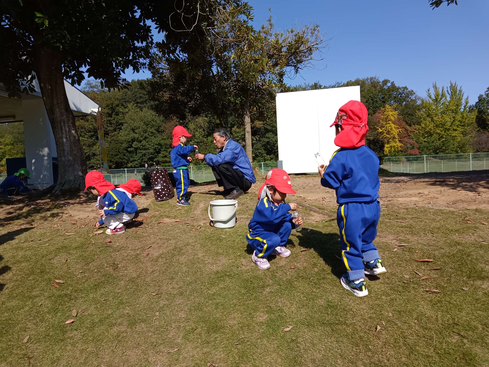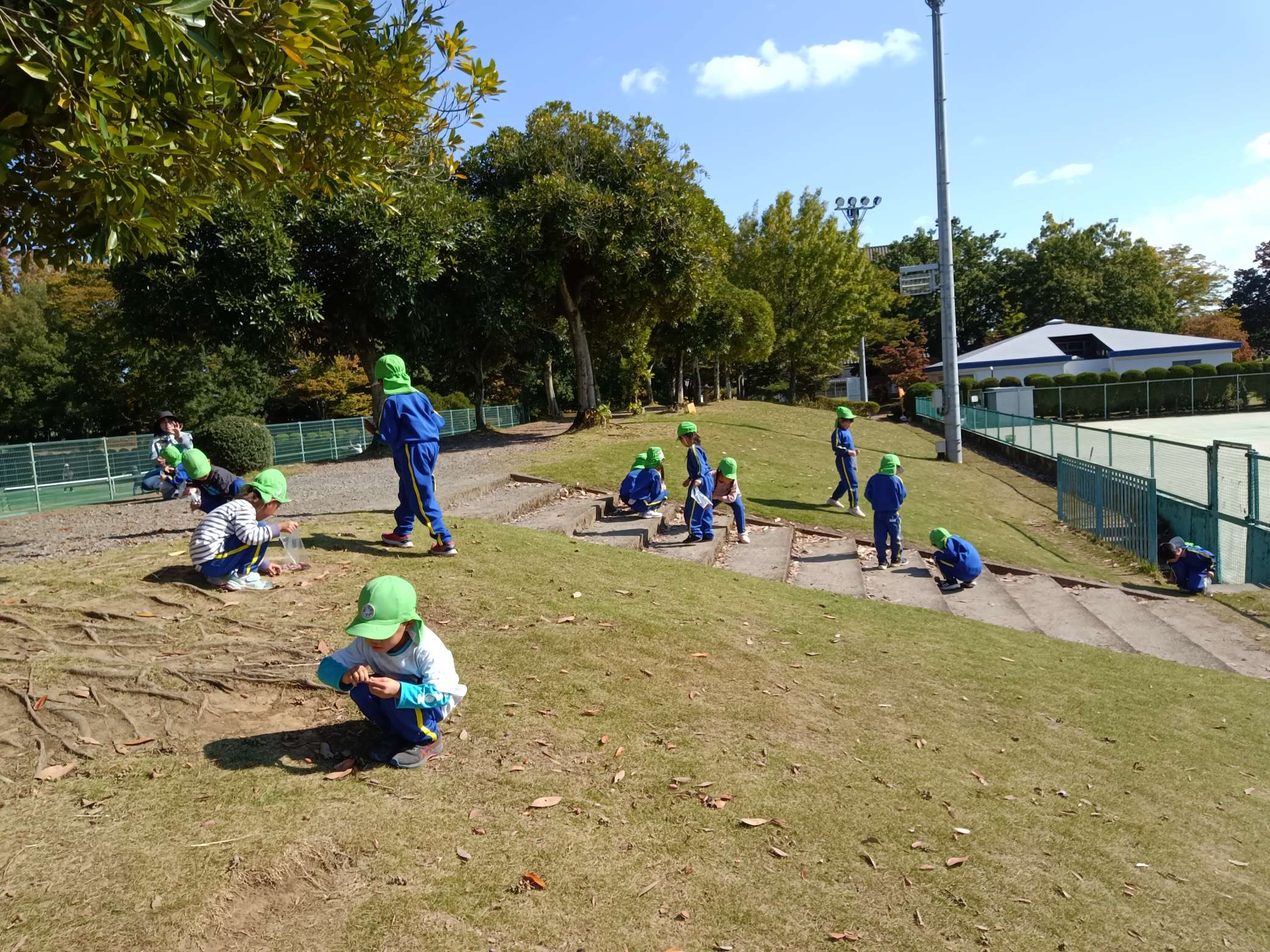 どんぐり拾いに、うさぎ・ひよこ・つきぐみも行ってきました。