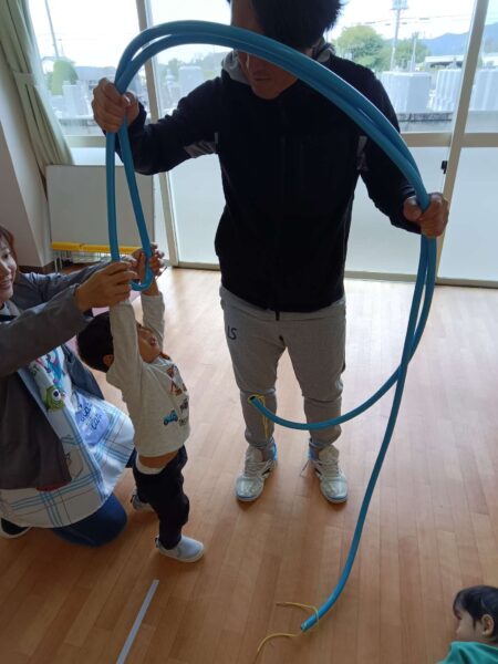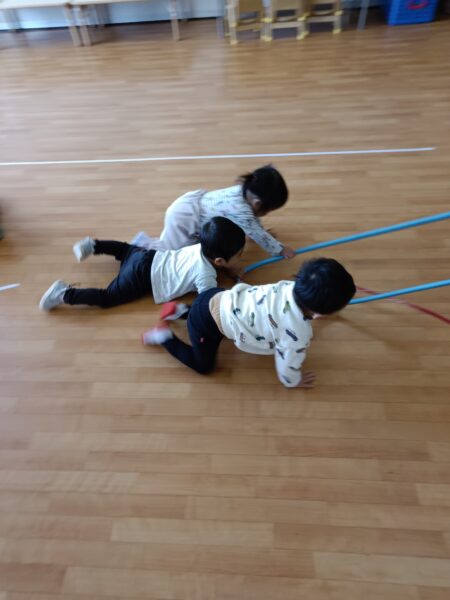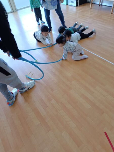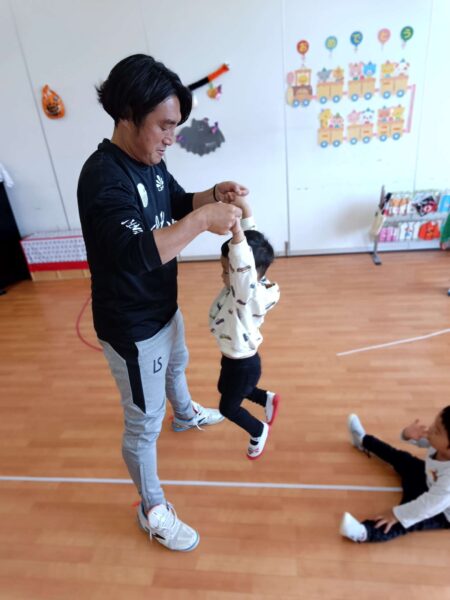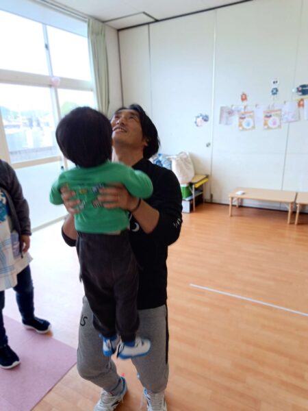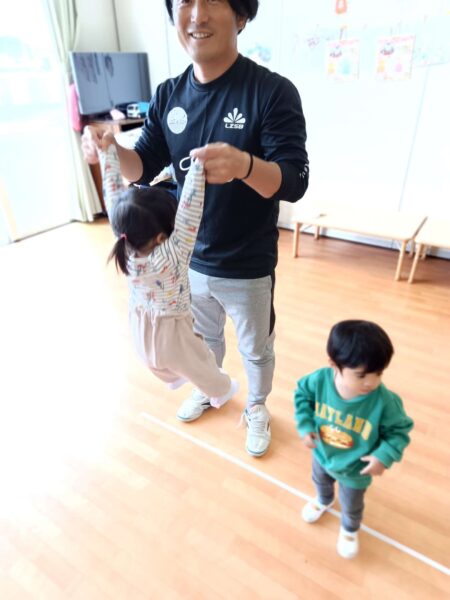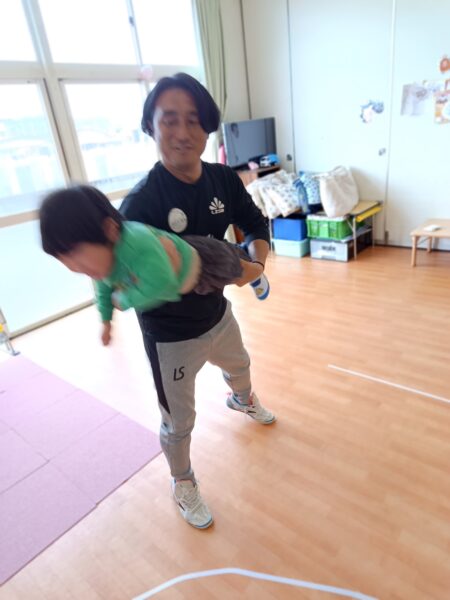 諏訪先生とたくさんふれあいながら体を動かして遊びました。