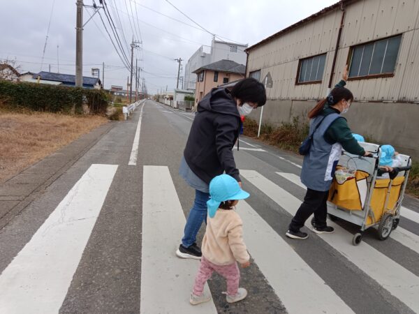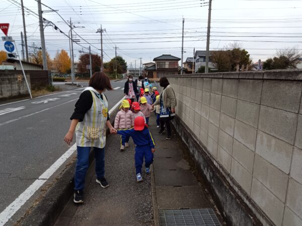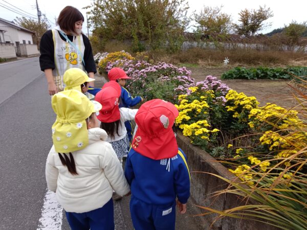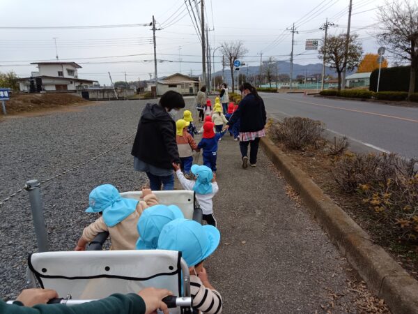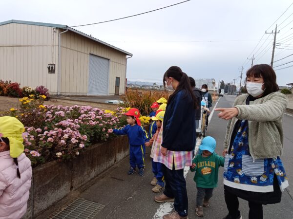 小さいクラスの子どもたちとお散歩に出かけました。