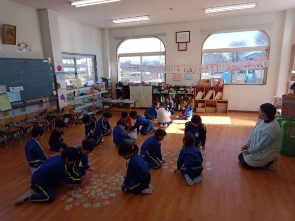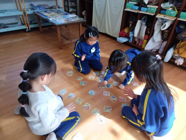 今日は園長先生も一緒にカルタ取りをしました。