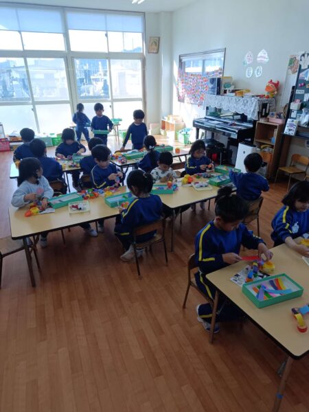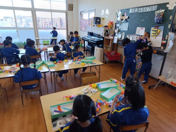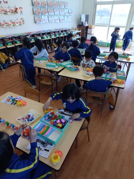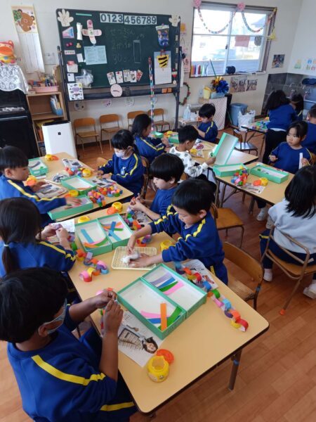 全保育室に飾ることを思いながら「喜んでくれるかな?」「きれいに見えるかな?」と“誰かのために作る”気持ちが育まれた製作活動になりました😊