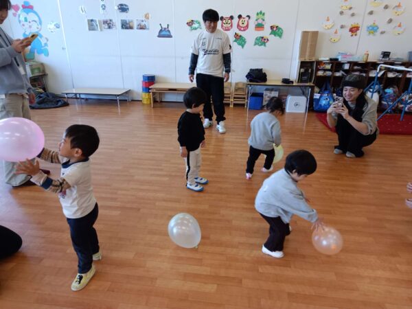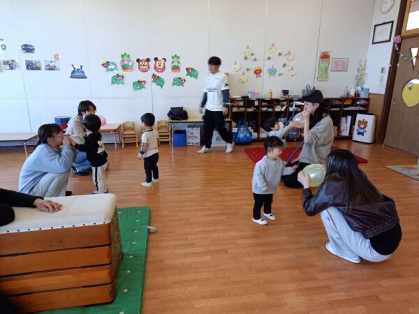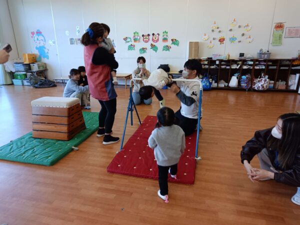 おうちの人と風船あそび、鉄棒、跳び箱をしたよ!