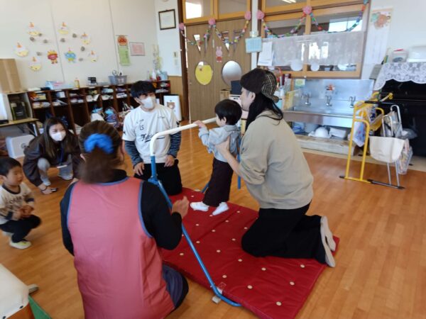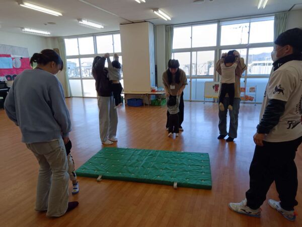おうちの人と手をつないで歩いたり、だっこやたかいたかいをしたりしてもらったね!