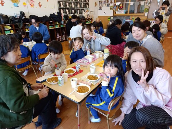 おうちの人と一緒に食べる給食はとっても美味しいね😋♥️