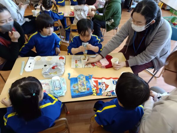 たくさん遊んでお腹がペコペコ・・・お給食の時間にしよう🍴
