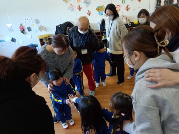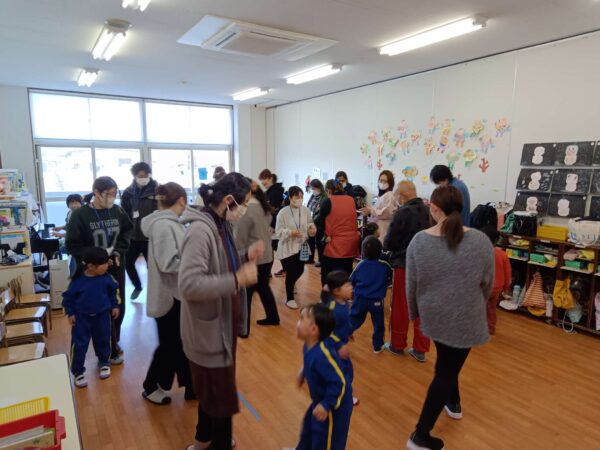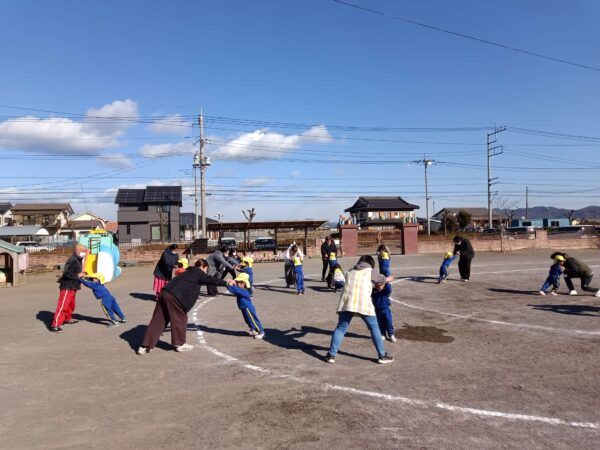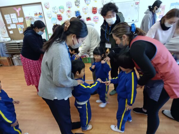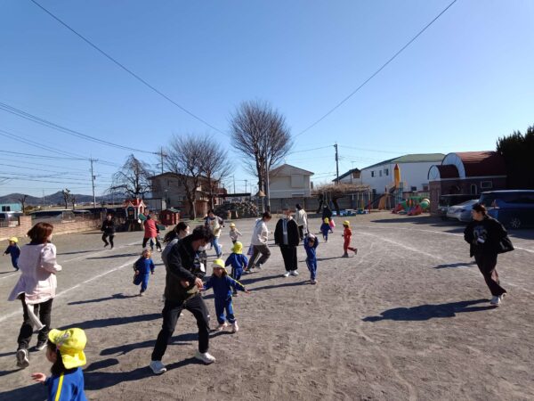 しっぽ取りでは、1回戦はみんなが鬼。おうちの人のしっぽが取れるかな?