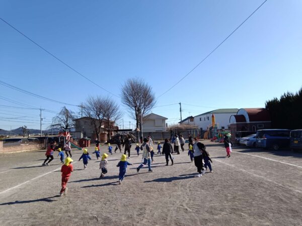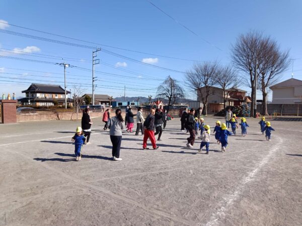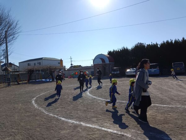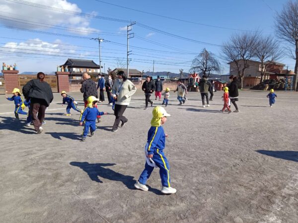 まずはマラソンから。 体操をしてよーいどん! おうちの人に負けないぞってみんな走るのが速かったね🏃