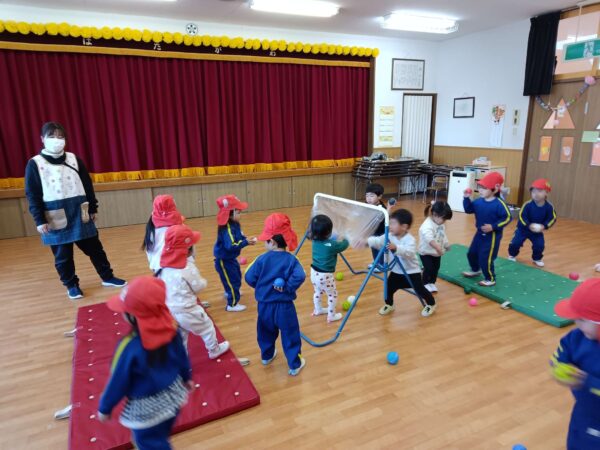 今日は久しぶりにりす、うさぎ、ひよこぐみ合同での体操教室😊
