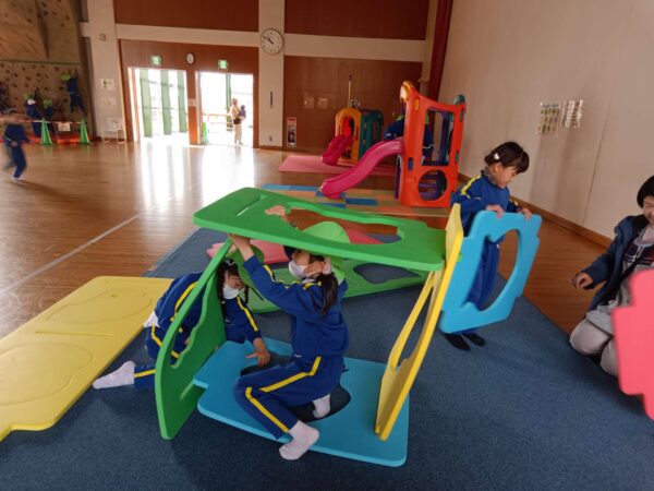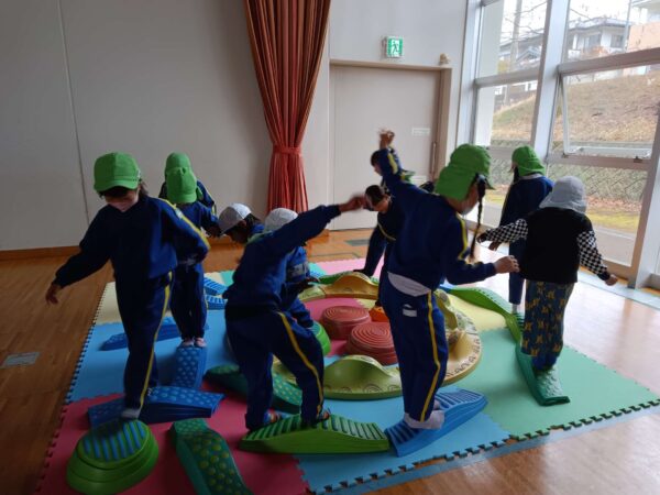 いろいろな形のブロックから落ちないように渡ったり!