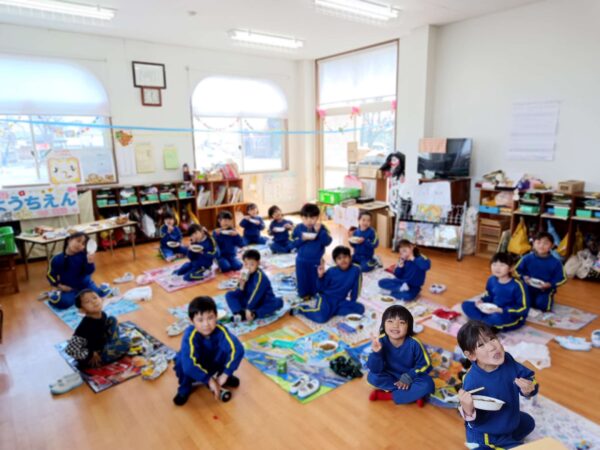 そして、レジャーシートを広げての給食😋