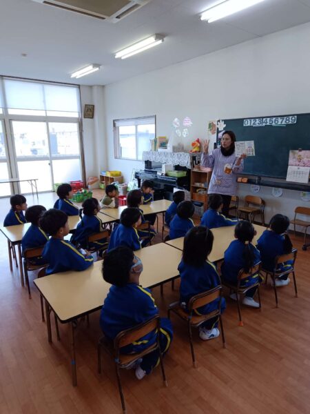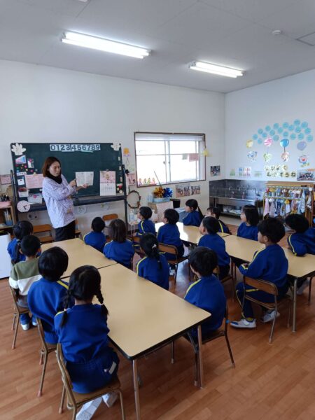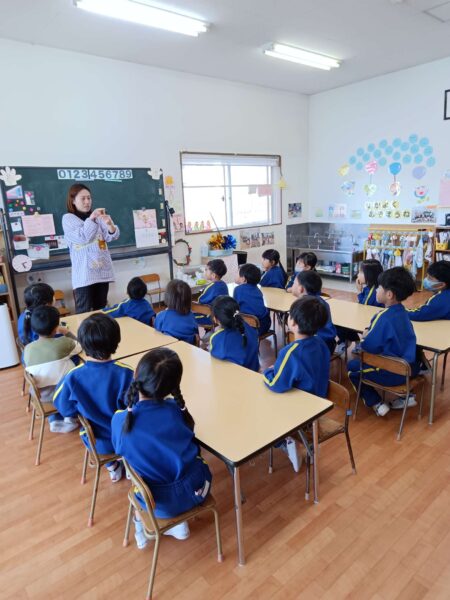 食育の一環として、みんなに栃木県の食べ物やどこで食べ物が作られるのか、どのようにしてみんなに届けられるのかなどを話し、食べ物にはそれぞれ体を元気にする大切な役割があることを伝えていきました!