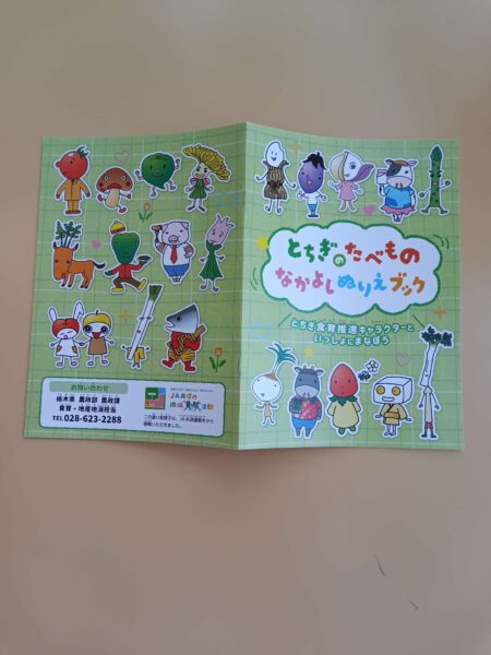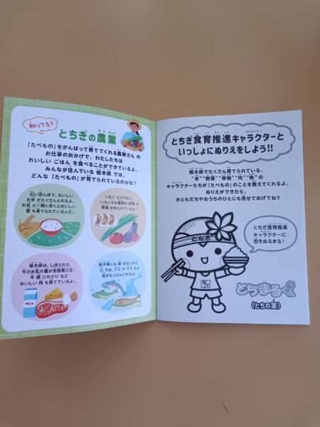 ももぐみさん宛に「栃木県 農政部 農政課 食育・地産池消担当」から【とちぎのたべものなかよしぬりえブック】と色鉛筆が届きました!
