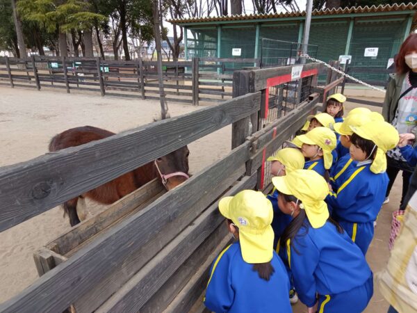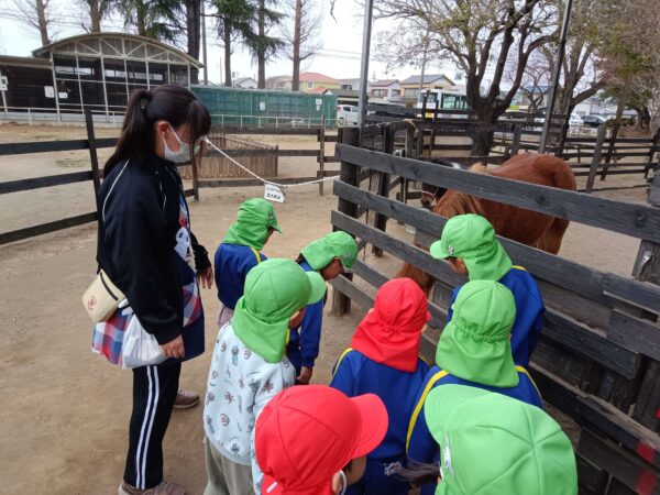 かわいいお馬さんに、エサもあげたよ。ちょっぴり怖かったお友だちもいたけど