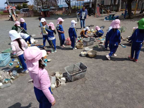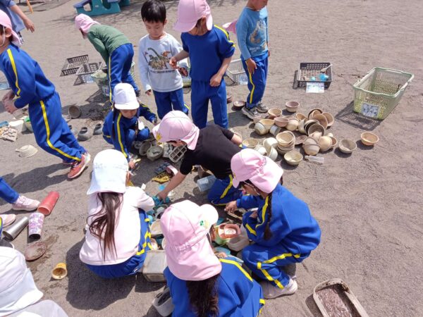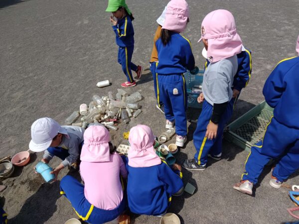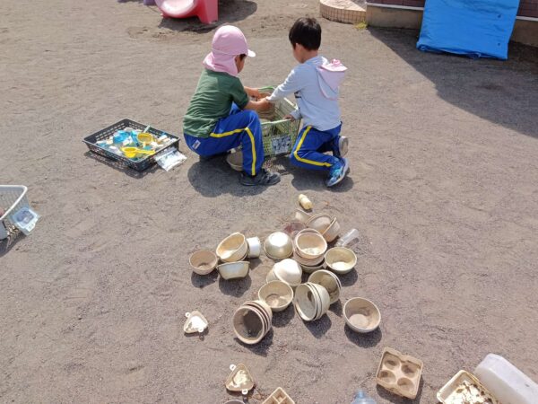 来週から新しいお友達が来るので、『バラバラになっていた砂場のおもちゃを片付けよう』と用具の整理が始まりました。