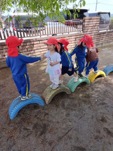 タイヤの上で、じゃんけんぽん♫