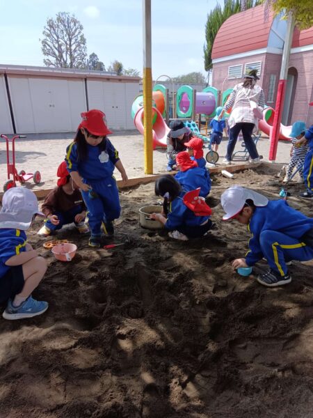 砂場で穴掘りやお料理作りをしたり⋯