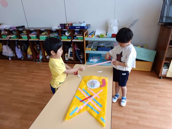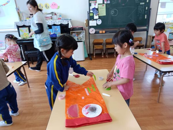 こどもの日に向けて、みんなで初めての共同製作をしました😊